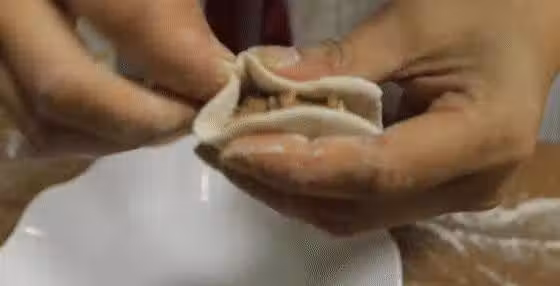 鍋內燒開水,大火把水燒開,把包好的餃子下入鍋中,餃子稍微定型,順著方向輕輕地推動水面,使鍋裡面的水轉動起來,防止餃子粘在鍋底,煮至餃子全部飄起,看起來鼓鼓的,說明餃子已經熟了,即可出鍋,一道皮薄餡多的香菇餃子就做好了。