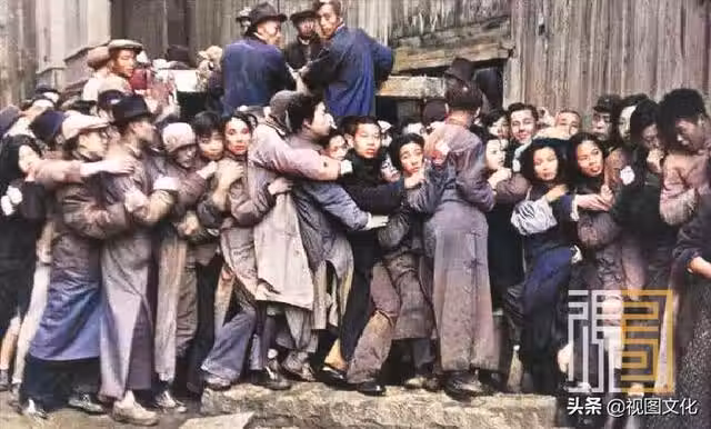 ▲1949年,上海,此時的國民黨經濟幾近崩潰,人們在銀行前擠兌,場面混亂不堪,攝影:布列松。。。。。。。。。。。