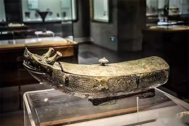 乍看龍形觥這個詞,可能大家還不知道怎麼讀,可如果看到「觥籌交錯」這個詞,大家應該就明白了。其實龍形觥是一件巨大的酒器,它像小舟一樣的身體就是專門用來存放酒的,且因為身上有個環扣,完全可以被吊起來。