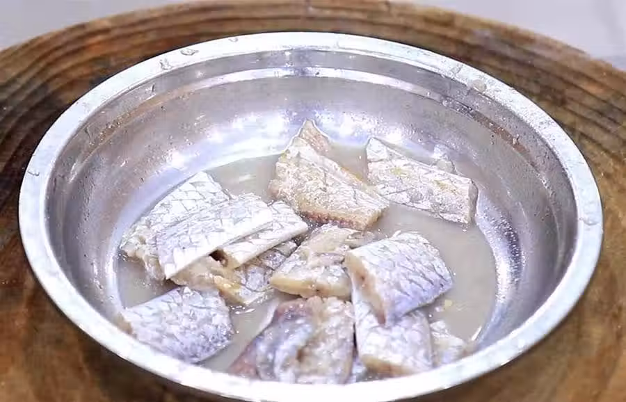 碗中打入一個雞蛋用筷子打散,準備一小碗澱粉,把腌好的帶魚先裹上一層澱粉再裹一層蛋液,再裹一層澱粉,這樣炸出來更加金黃焦酥,而且不會掉皮。