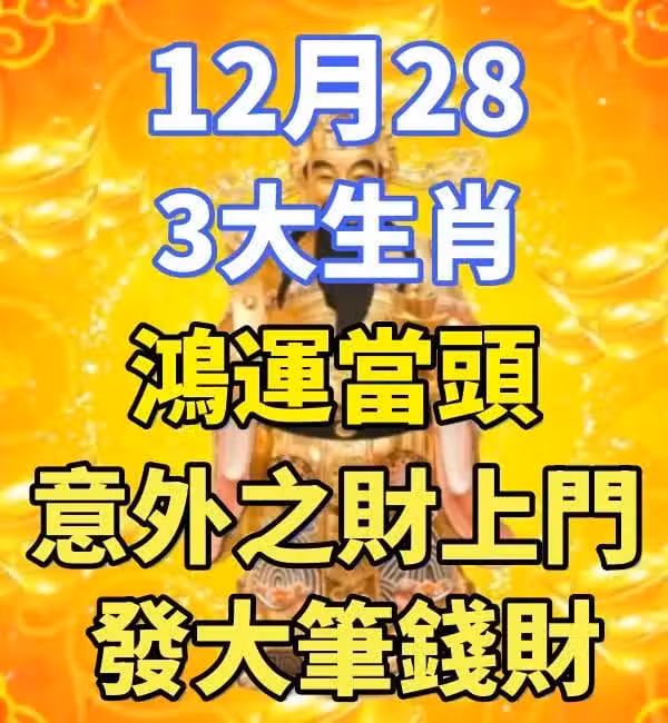 12月28日開始,發大筆錢財,鴻運當頭,3大生肖會有意外之財上門
