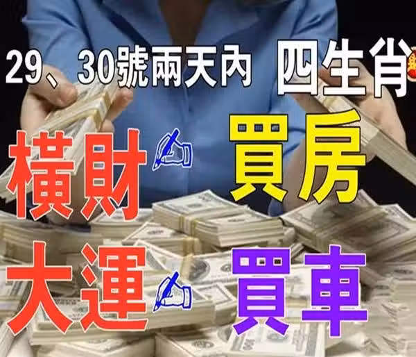 12月29、30號兩天內四生肖橫財大運傍身,買車買房不是夢