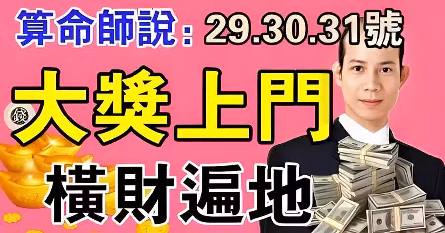 恭喜了7大生肖,在未來三天( 11月20~23日)即將有一筆橫財,準備好收錢吧