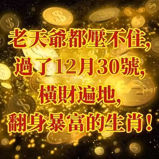 老天爺都壓不住,過了12月30號橫財遍地,翻身暴富的生肖