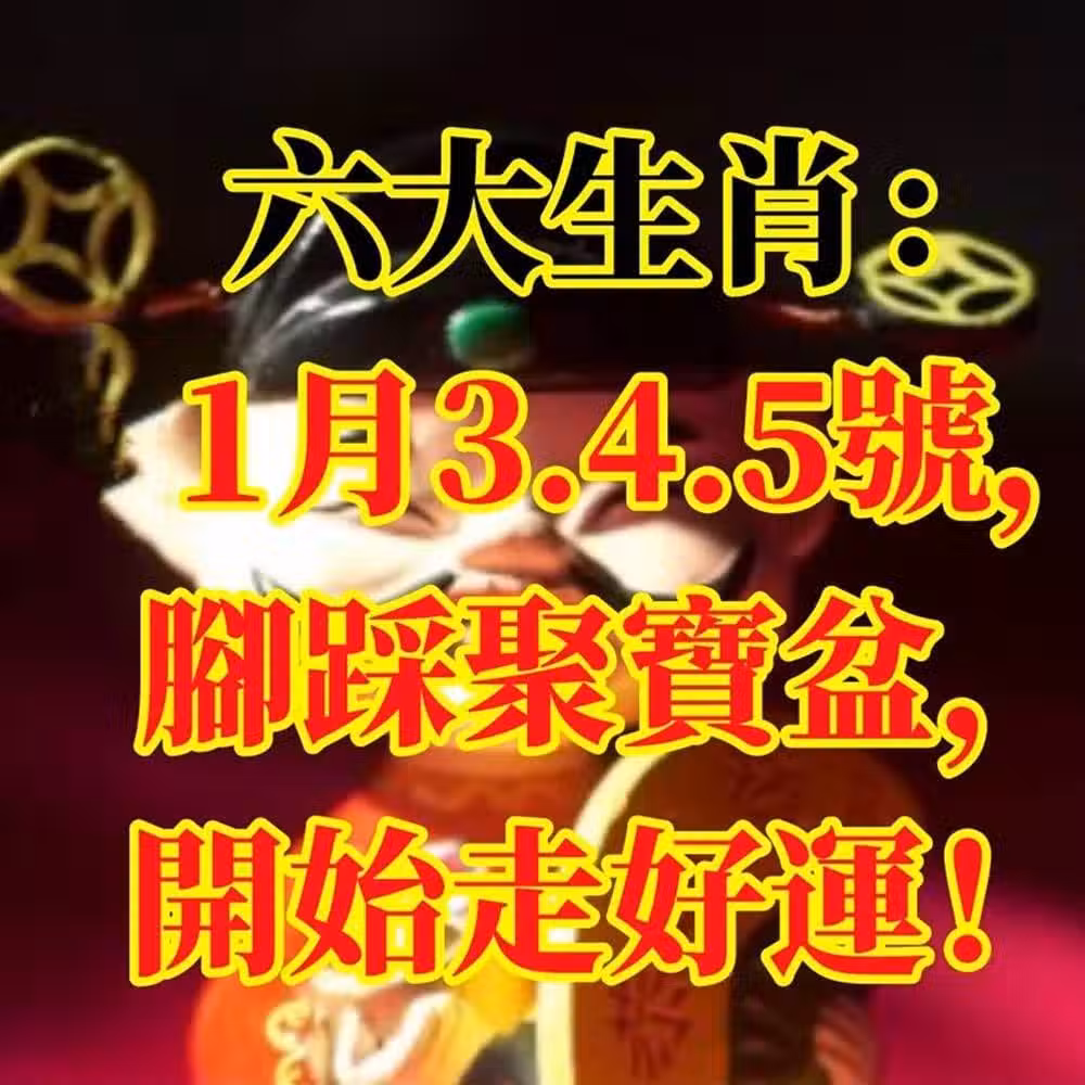 1月3.4.5號開始,腳踩聚寶盆的6生肖,開始走好運!