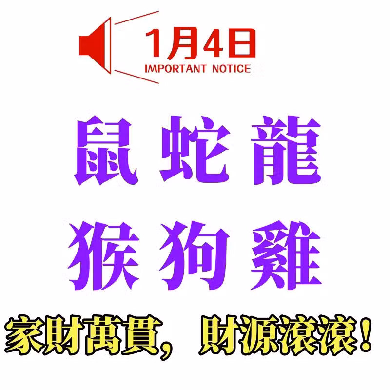 1月4日生肖運勢_鼠、蛇、龍大吉,家財萬貫,財源滾滾!