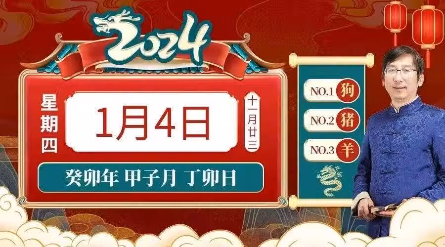 小運播報:2024年1月4日,星期四,農歷十一月廿三 (癸卯年甲子月丁卯日),法定工作日。