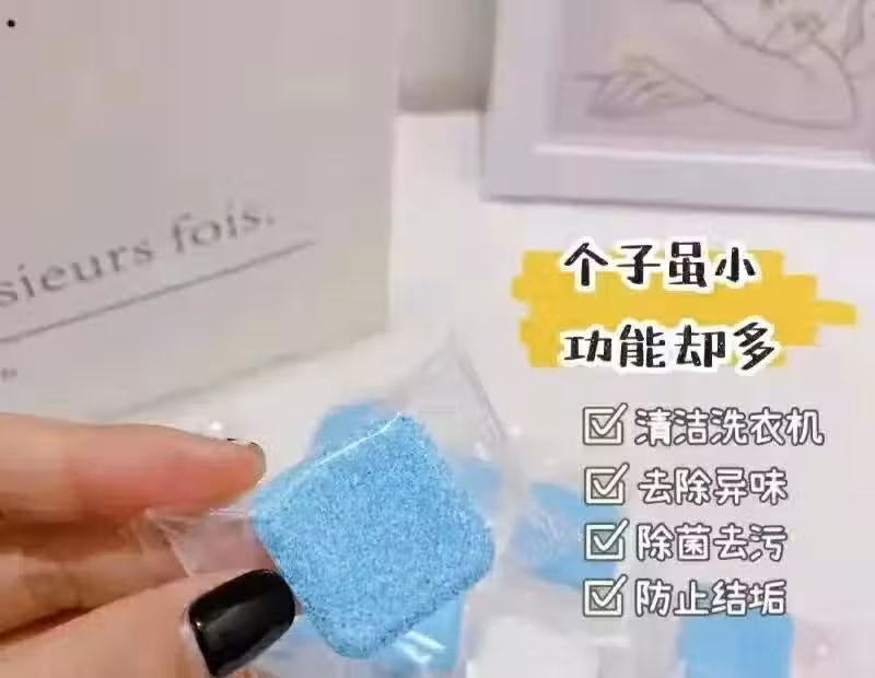 這款國產的洗衣機泡騰片,每一個都有獨立包裝,存放方便,用著簡單!