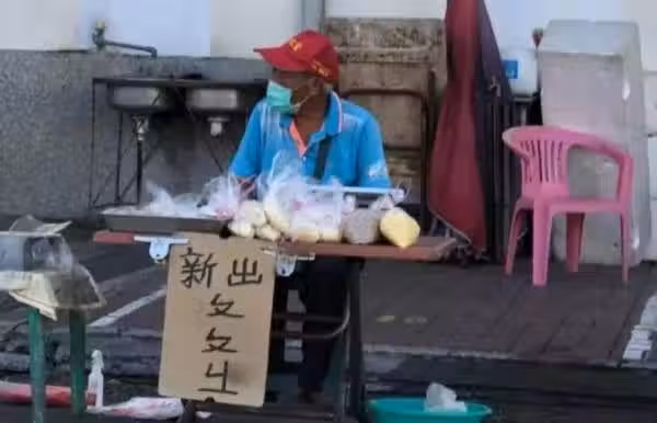 據《今日新聞》報導,畫面中,這位來自屏東的阿伯戴著口罩、皮膚黝黑,頭上戴著紅帽、穿著藍上衣,在路邊簡單地架起桌子賣東西,上面擺著一袋袋農產品,奇怪的是,告示牌卻寫著「新出ㄆㄆㄐㄧ」讓人滿頭問號,他到底賣的是什麼東西呀?