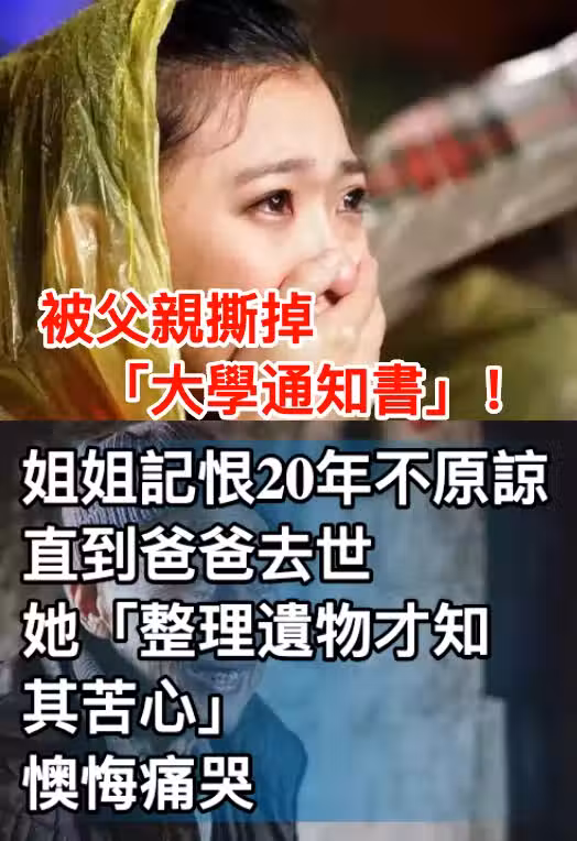 被父親撕掉「大學通知書」!姐姐記恨20年不原諒 直到爸爸去世她「整理遺物才知其苦心」懊悔痛哭