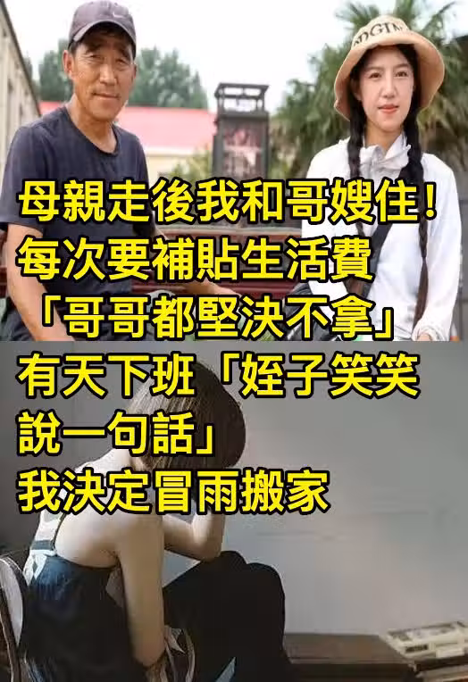 母親走後我和哥嫂住!每次要補貼生活費「哥哥都堅決不拿」 有天下班「姪子笑笑說一句話」我決定冒雨搬家