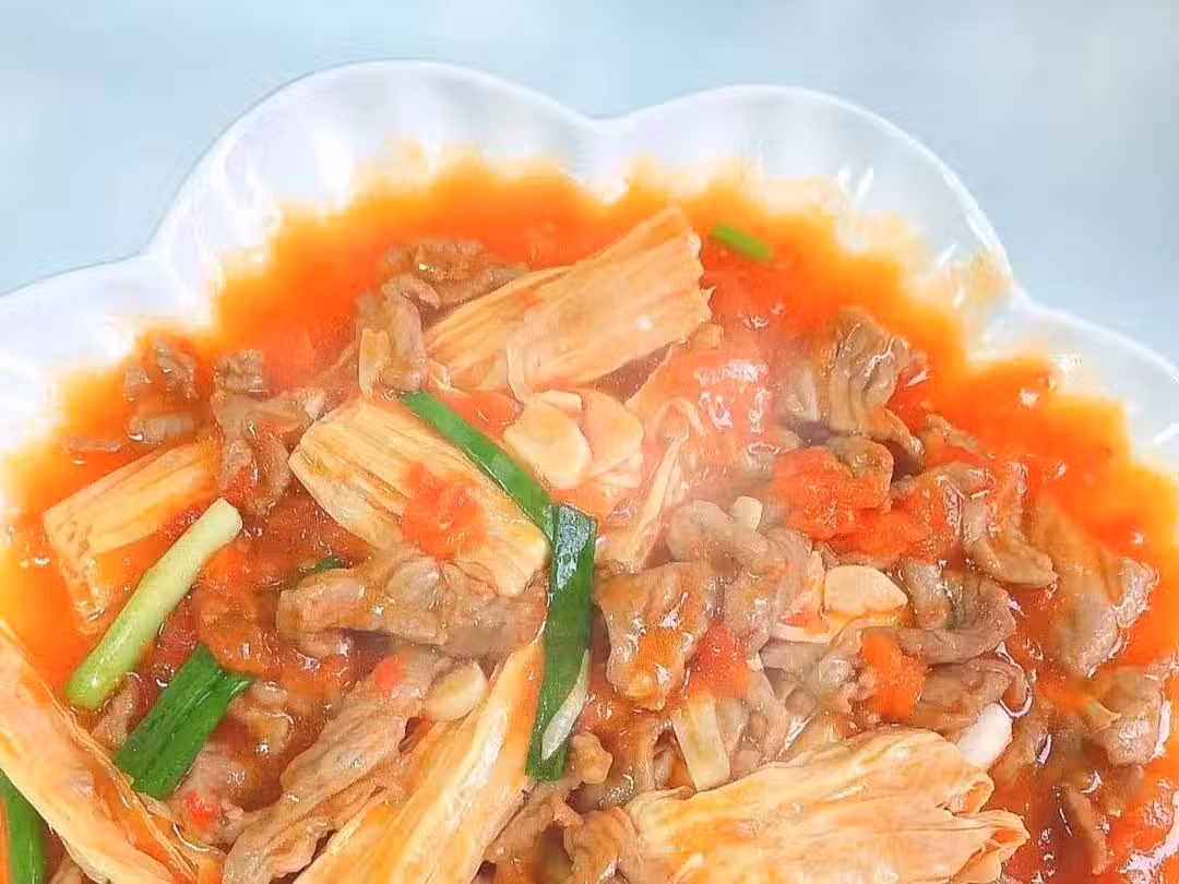 番茄、牛肉、腐竹、姜、蔥、玉米澱粉