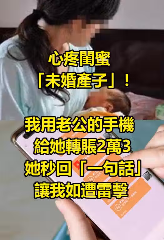 心疼閨蜜「未婚產子」!我用老公的手機給她轉賬2萬3 她秒回「一句話」讓我如遭雷擊