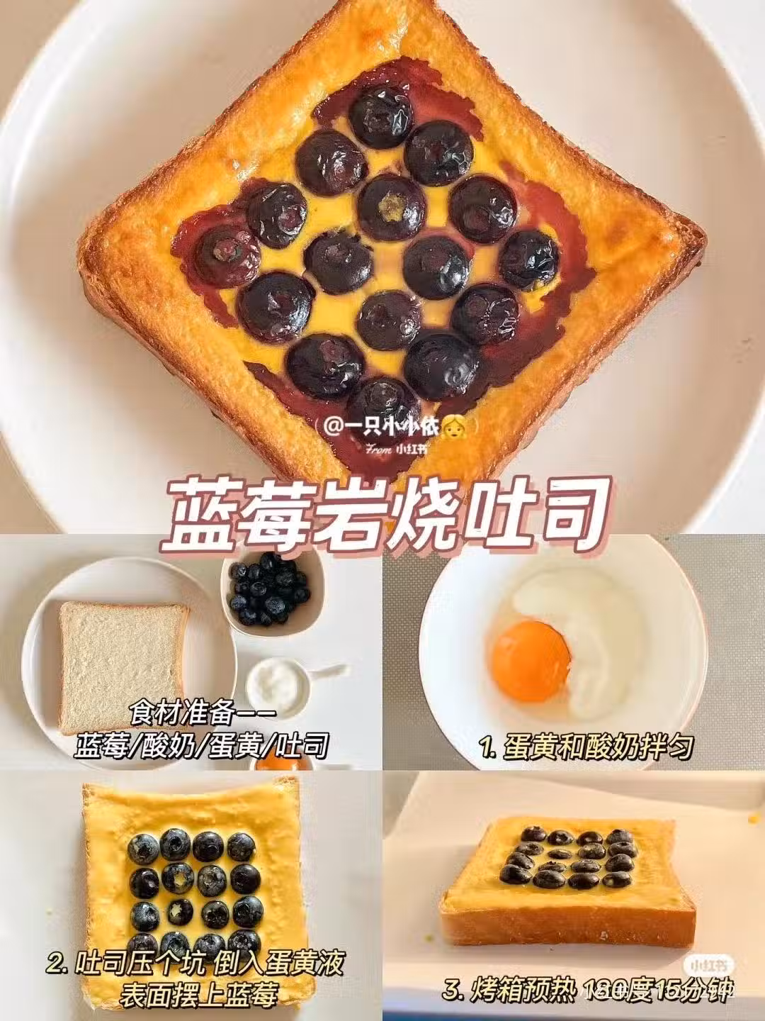 表面擺上藍莓,烤箱烤15分鐘即可。