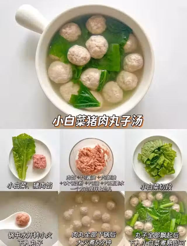 食材:小白菜、豬肉餡