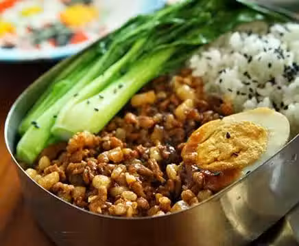 將上述食材放入容器中,一份香噴噴的滷肉飯就好了喲。
