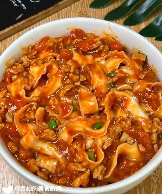 1、鍋中油燒熱加入肉沫炒變色,放入蔥蒜炒香。接著加入番茄丁炒軟出汁,加2勺生抽、1勺老抽、1勺蚝油、少許鹽和糖、1勺番茄醬炒勻。