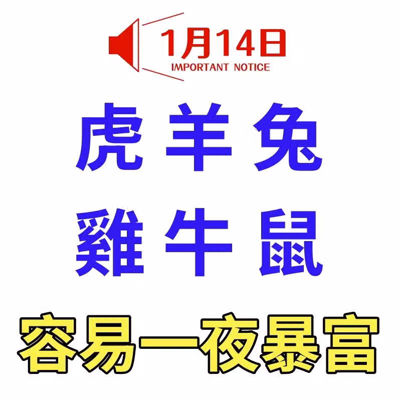 1月14日生肖運勢_虎、羊、兔大吉,容易一夜暴富