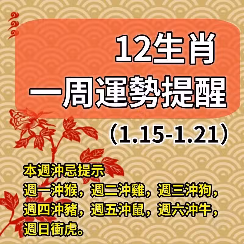12生肖一周運勢提醒(1.15~1.21)