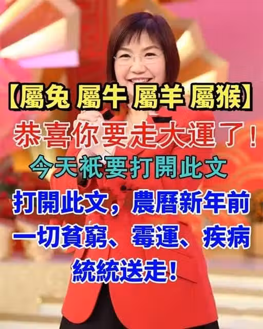 生肖【屬兔 屬牛 屬羊 屬猴】恭喜你要走大運了!打開此文,農曆新年前一切貧窮、霉運、疾病統統送走!