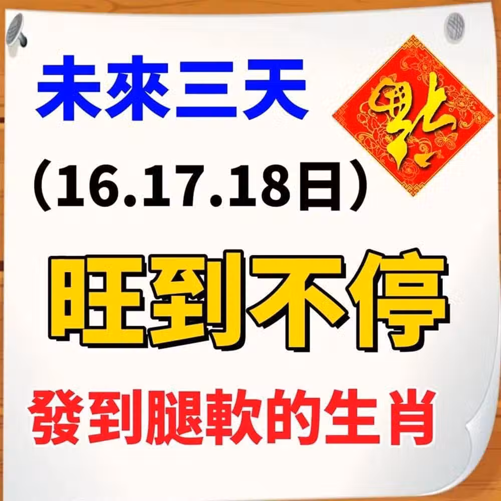 未來三天(16.17.18日)旺到不停,發到腿軟的生肖