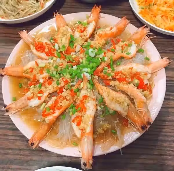 1.鮮蝦洗凈開背去蝦線,剪去蝦須,粉絲提前泡發鋪地,擺好鮮蝦,剁好蒜蓉