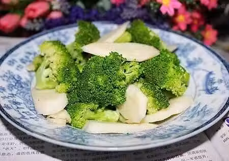 原料:鐵棍山藥、西蘭花、油、鹽、蘑菇精