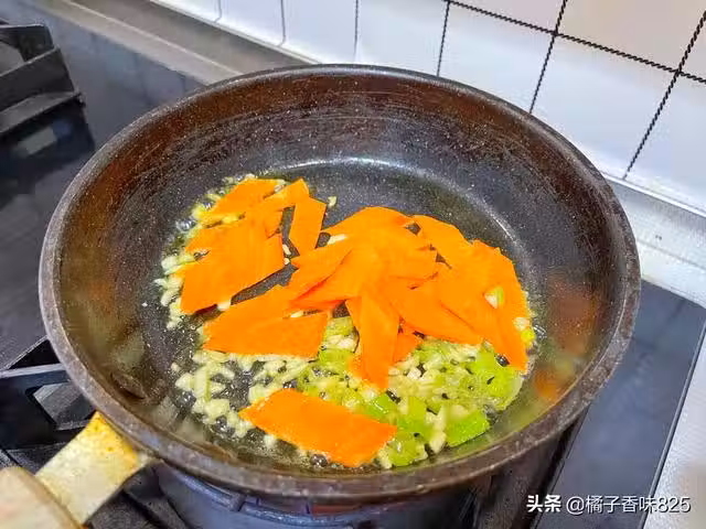 4、加入娃娃菜翻炒1分鐘,不要炒時間太久,娃娃菜比較嫩,時間太長,就失去脆爽的口感。