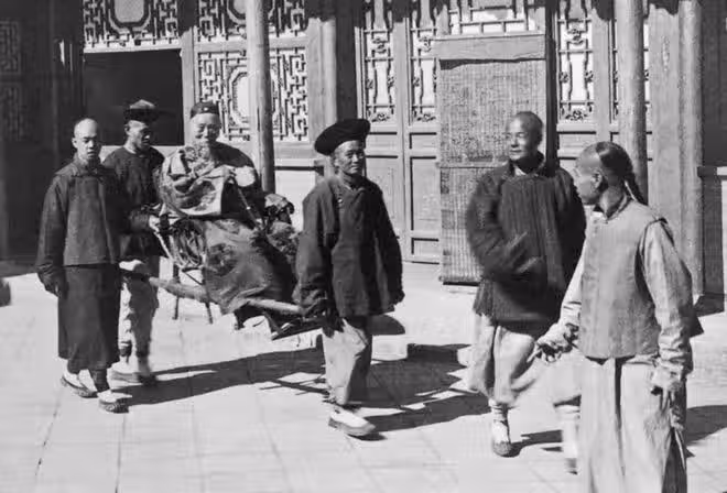晚清老照片:慈禧太后與太監玩遊戲,李鴻章老態龍鐘行走困難