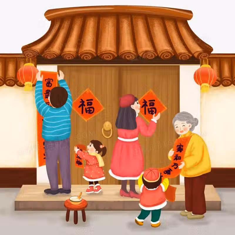 在張貼春聯時,往往有的人把上下聯貼錯位置。