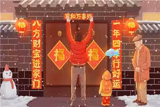 貼門神要注意兩張門上的人物臉是相對的,不要貼反了。