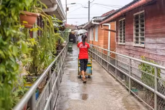 在當地人的帶領下,來到森森水上屋吃一次早餐,餐廳就搭建在水上,透過腳下木板的縫隙看得見海水。