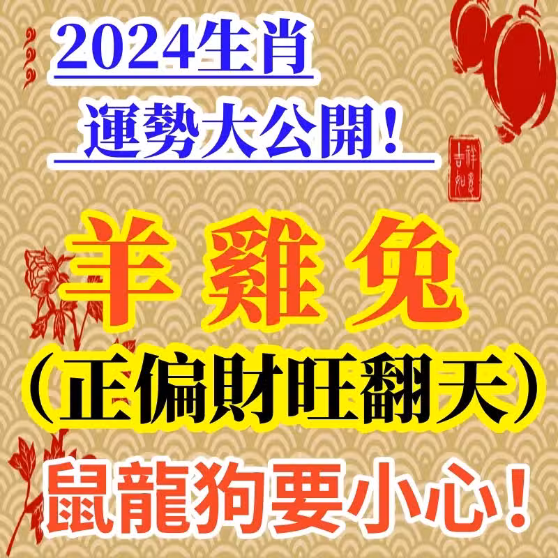 2024生肖運勢大公開!羊雞兔正財、偏財都旺翻天,鼠龍與狗要小心