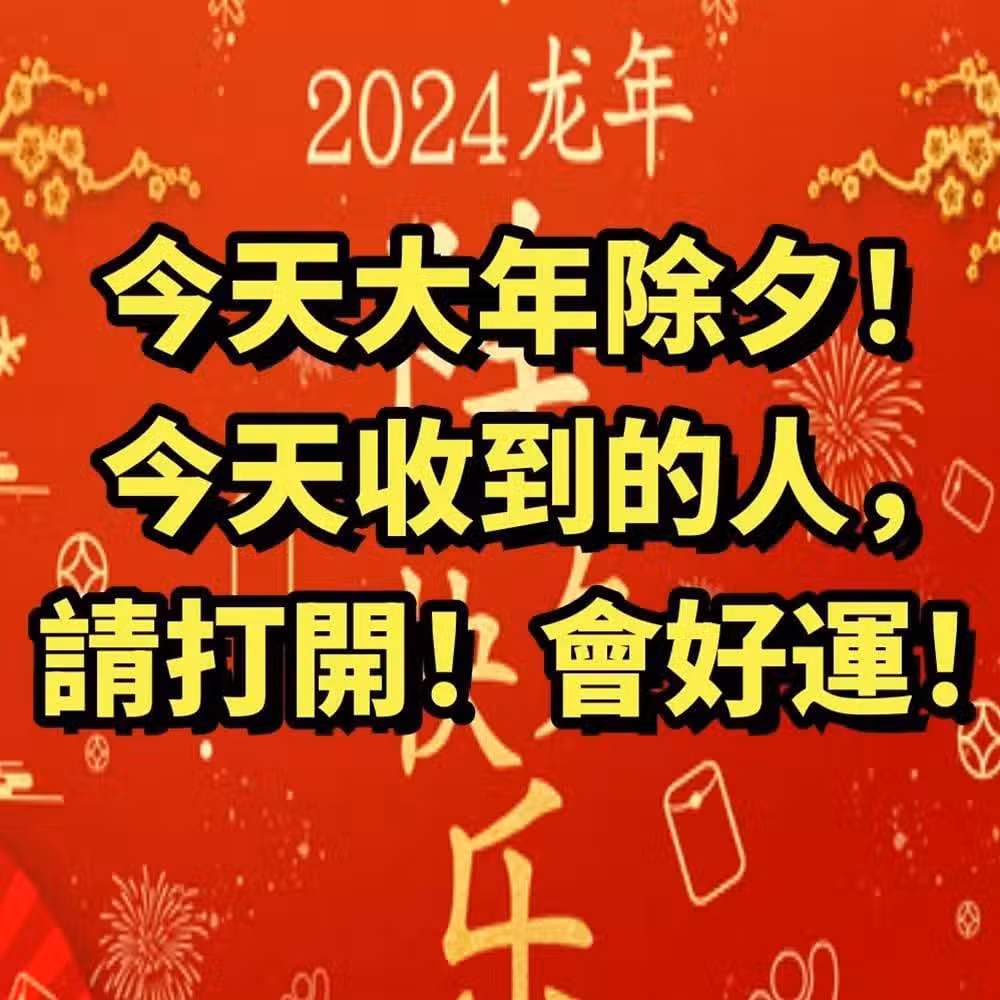 今天大年除夕!今天收到的人請打開!會帶來好運!