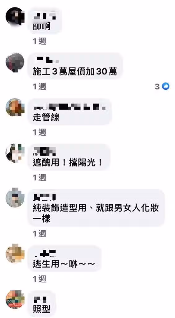貼文一出,底下不少網友熱心解惑,「格柵,一般是用遮醜,可能配合冷氣主機或是避免管線外露」、「可以遮住大部分陽光不會過熱。但還是可以透光讓房子可以有光線明亮」、「這是格柵!主要是設計美觀,遮蓋冷氣室外機,才不會看起來很醜」、「裡面通常放冷氣室外機,格柵主要功能就是遮醜」、「這個有很多說法,有遮醜,有防曬又有間接光源,可防偷窺」。