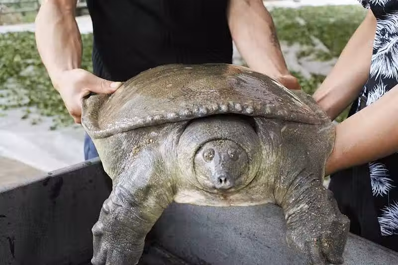 男子花25000元買一隻86斤酒店待烹飪大鱉,放生時大鱉頭部的一個舉動,讓岸上人驚慌失措