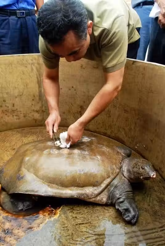 男子花25000元買一隻86斤酒店待烹飪大鱉,放生時大鱉頭部的一個舉動,讓岸上人驚慌失措