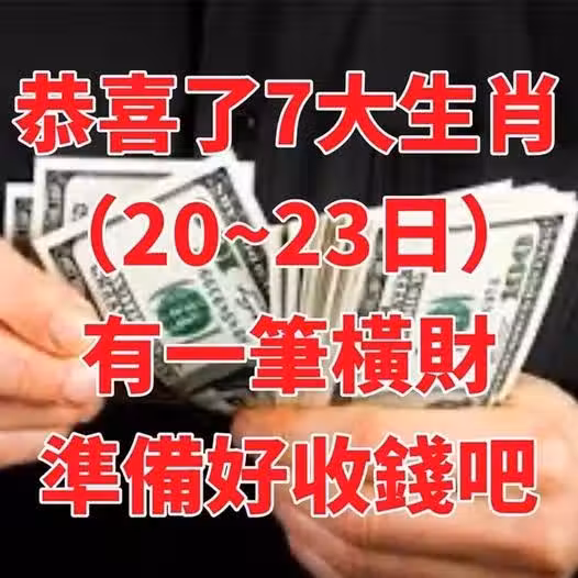 恭喜了7大生肖,在未來三天( 11月20~23日)即將有一筆橫財,準備好收錢吧