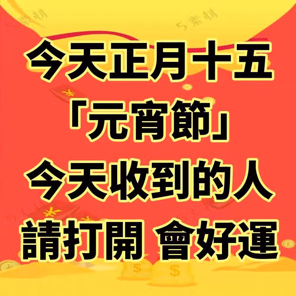 今天正月十五!「元宵節」今天收到的人請打開!會好運!