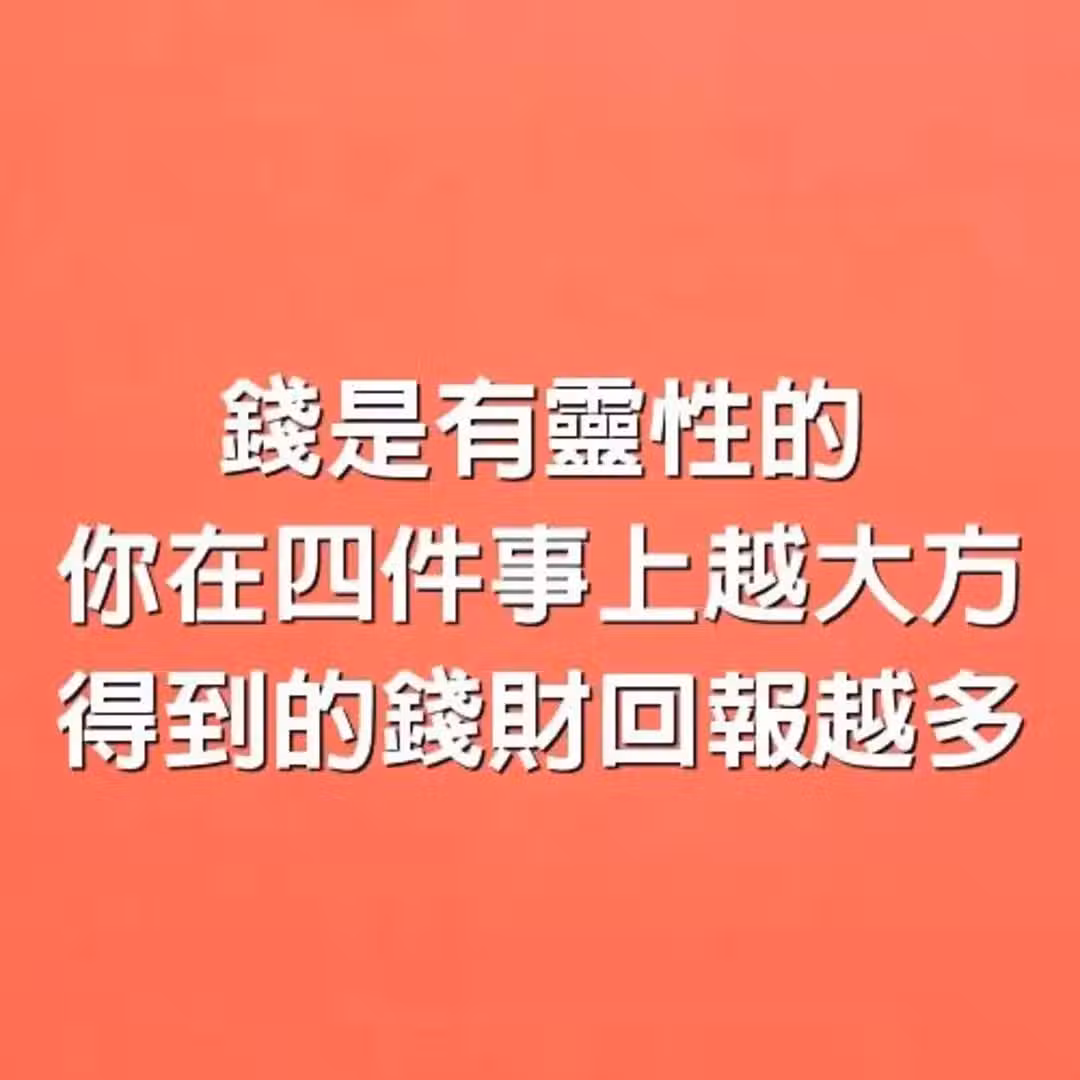 錢是有靈性的,你在四件事上越大方,得到的錢財回報越多