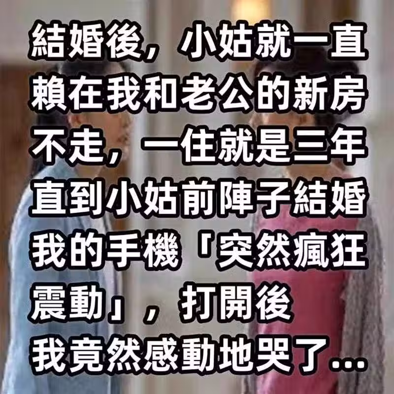 結婚後,小姑就一直賴在我和老公的新房不走,直到小姑前陣子結婚,我的手機「突然瘋狂震動」,打開後我竟然感動地哭了…