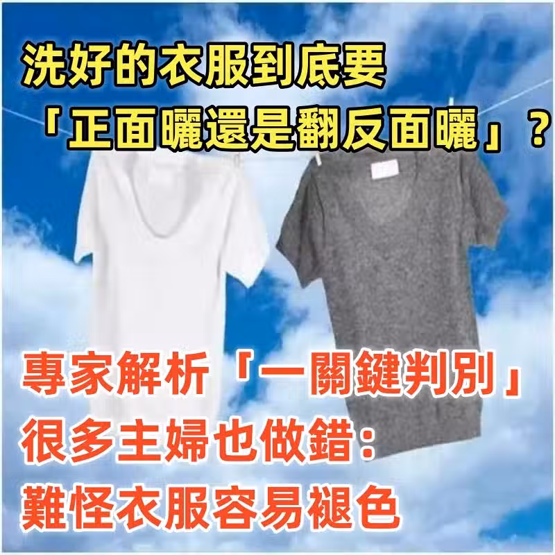 洗好的衣服到底要「正面曬還是翻反面曬」?「一關鍵判別」很多主婦也做錯:難怪衣服容易褪色