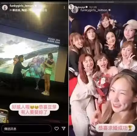 ▲事後好友們也PO出求婚現場照分享小倆口的喜悅。(圖/取自檸檬、陳伊IG)