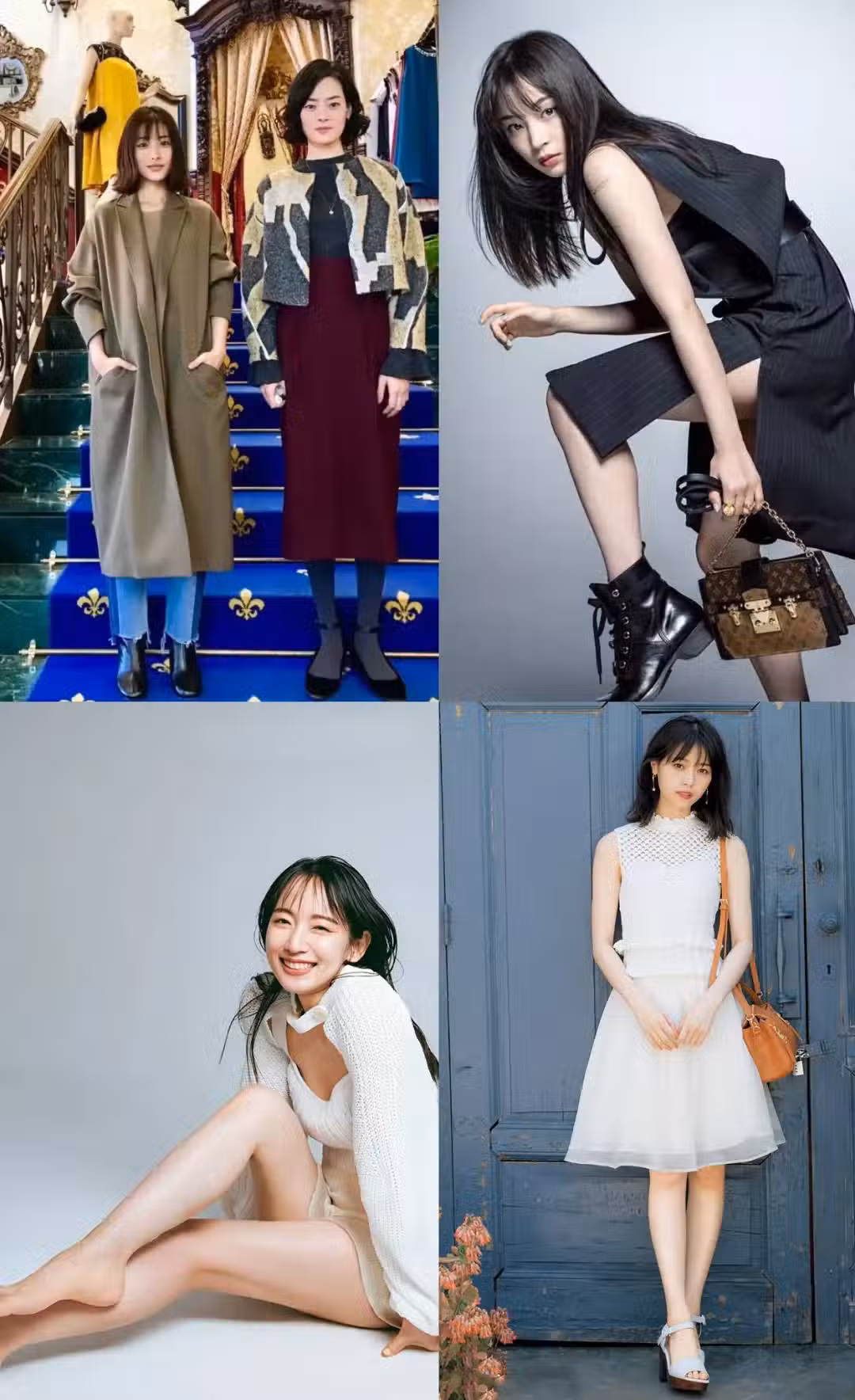 左上:石原里美(157cm) 右上:廣瀨鈴(159cm) 左下:吉岡里帆(158cm) 右下:西野七瀬(159cm) 再拿個比較極致的來舉例。 矢口裡真,如果沒有其他人和她同框作為對比,其實也很難讓人相信她的身高只有145cm。 她和歷任男友的身高差也是絕了👇