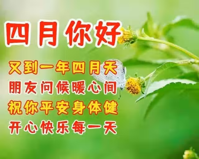 5、又到一年四月天,朋友問候暖心間,祝你平安身體健,開心快樂每一天,4月你好
