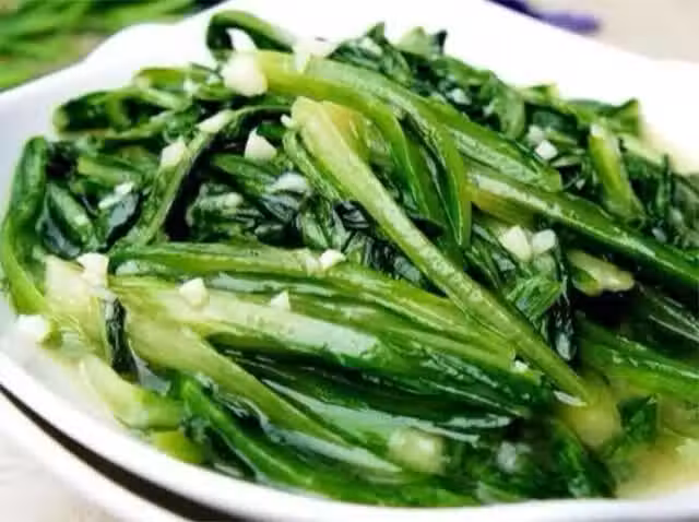 4、鍋中燒熱油,油熱後澆在油麥菜上,拌勻即可食用。