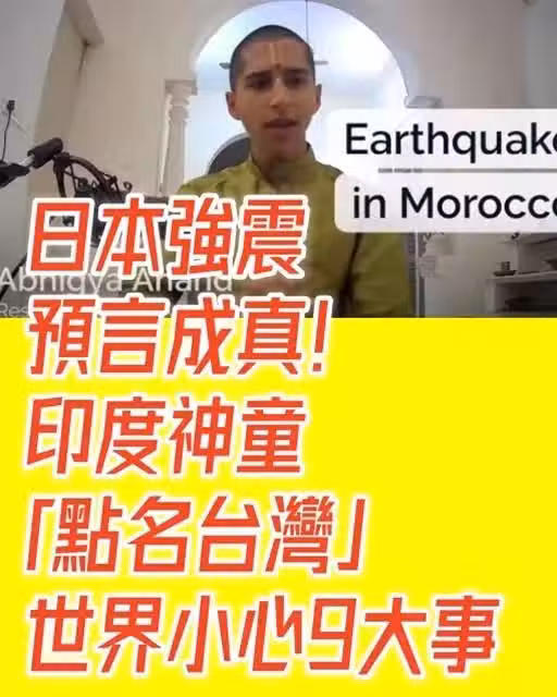 印度神童在3個月前曾發布一支影片,其內容講述世界未來會發生的天然災害,他當時提到,在去年10月至2024年農曆新年之間,將會發生大地震,而這也恰好與1日的日本大地震呼應。