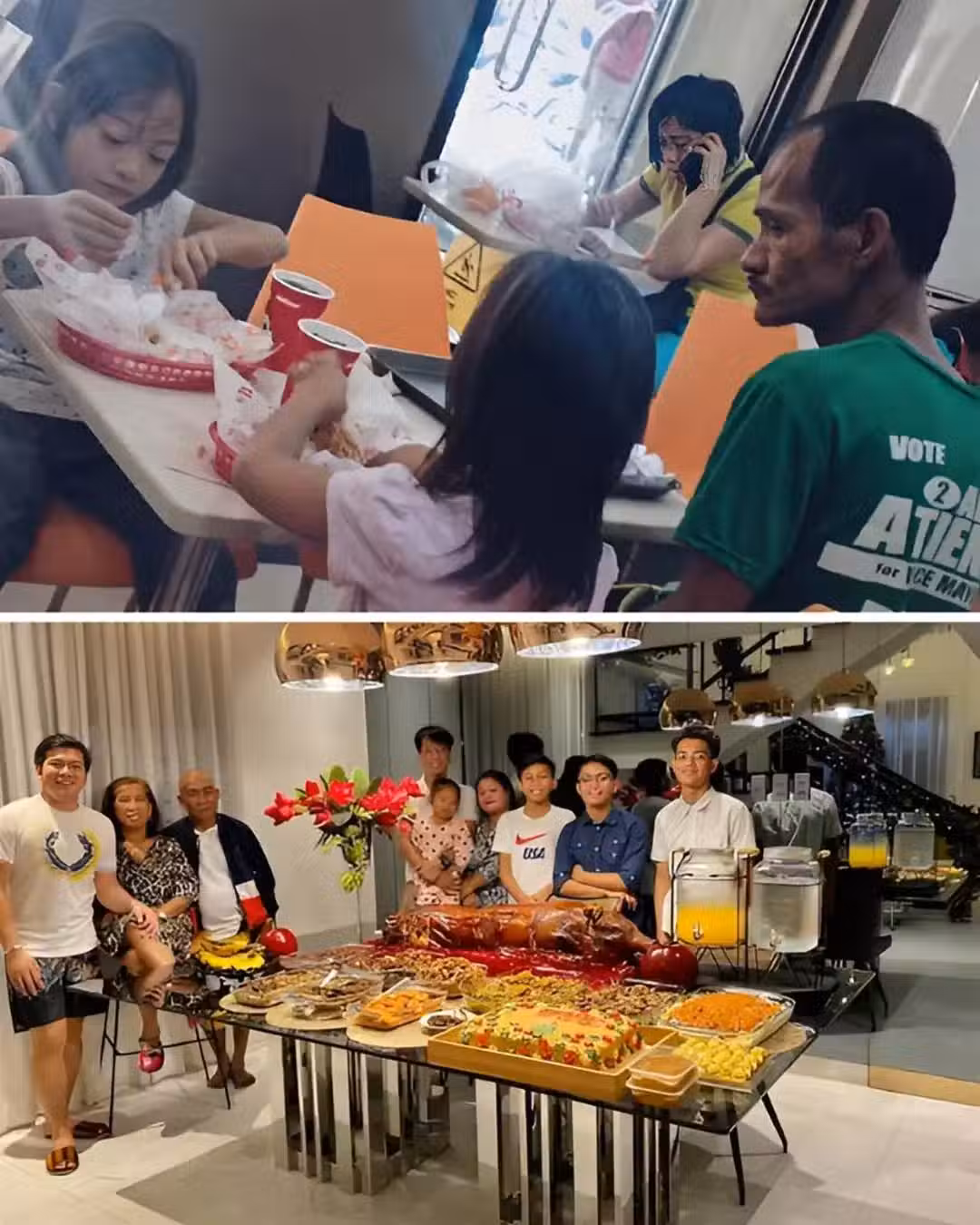 網友們在看完這張照片後,紛紛被感動,許多人表示想要幫忙,而當時被拍照打卡的速食餐廳Jolibee也表示會幫助他到底!沒想到後來Jolibee餐廳就在自己的臉書上發文表示:「還記得那位被拍到很無私,給女兒自己全部的爸爸嗎?我們決定要給他們全家一個大大的驚喜!」