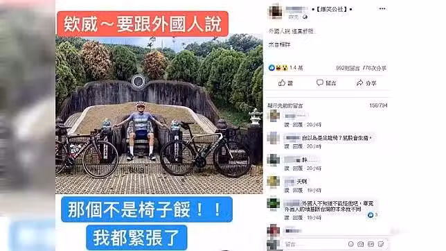 許多網友看完也震驚回應「晚上要被托夢了」、「咖撐會被踢爛」、「哇X,我眼睛睜好大」、「阿娘為…晚上很精采」、「屁股還要不要啊」、「看也知道是墳墓,鐵齒的會滿地找牙」、「感覺毛毛的」、「他不知道吧,不知者無罪」,該位外國人的身分也被搜出,他是來自丹麥的21歲自行車選手,先前來台灣參加比賽,他得知真相後,也經已把照片從Instagram上刪除,看來是真的不知道才會把墳墓當龍椅去坐。