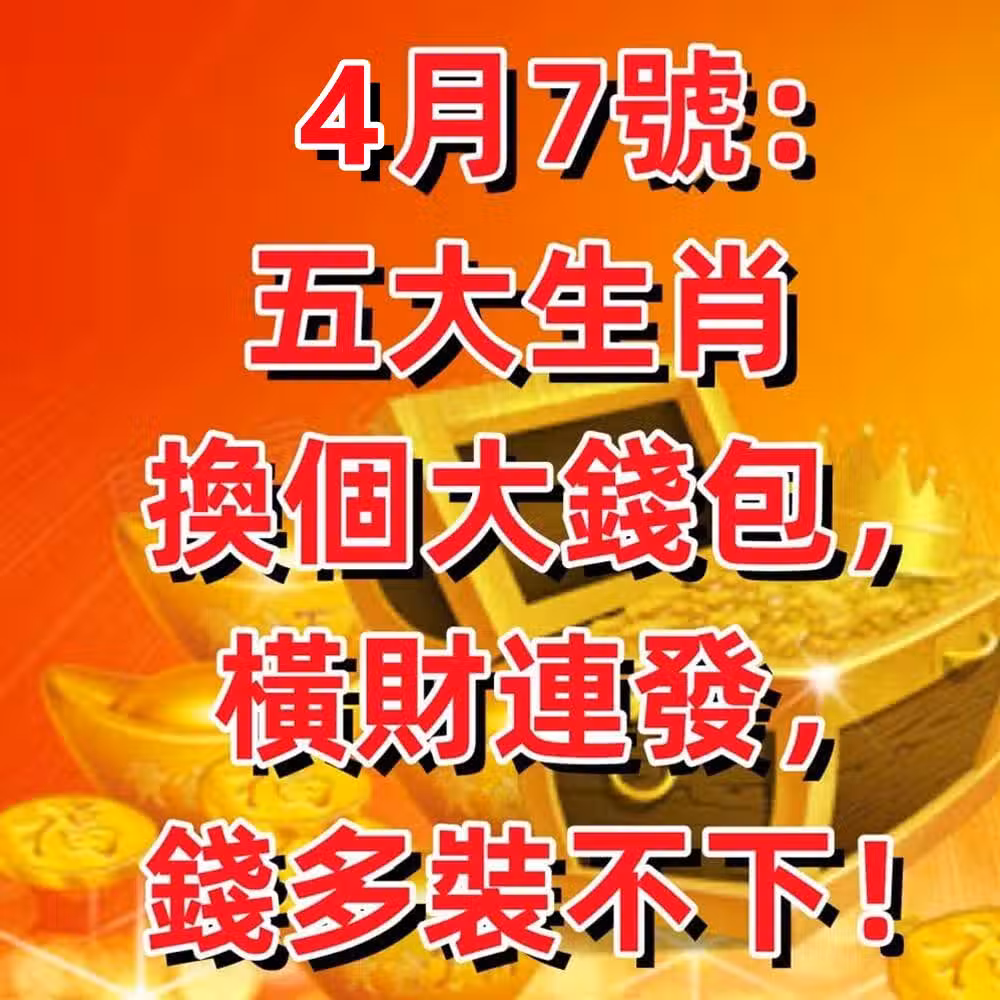 4月7號準備換個大錢包,橫財連發,錢多裝不下的生肖!